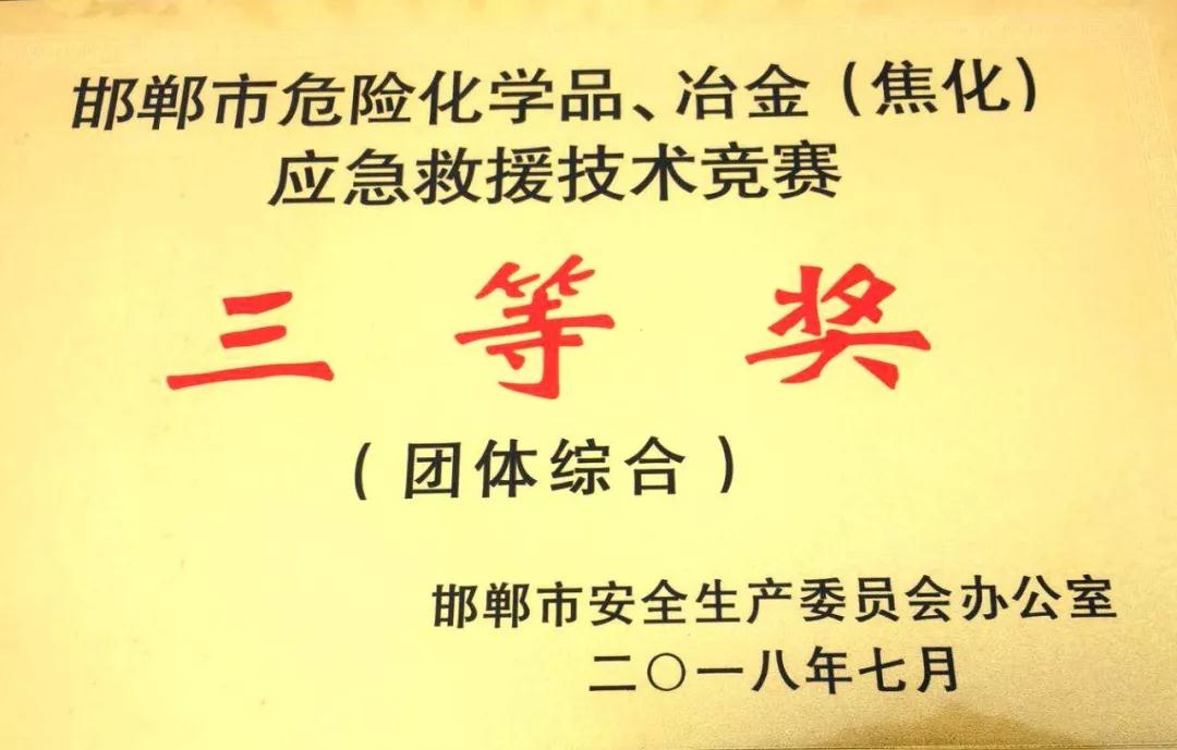 我公司榮獲危險(xiǎn)化學(xué)品、冶金(焦化)應(yīng)急救援技術(shù)競(jìng)賽三等獎(jiǎng)