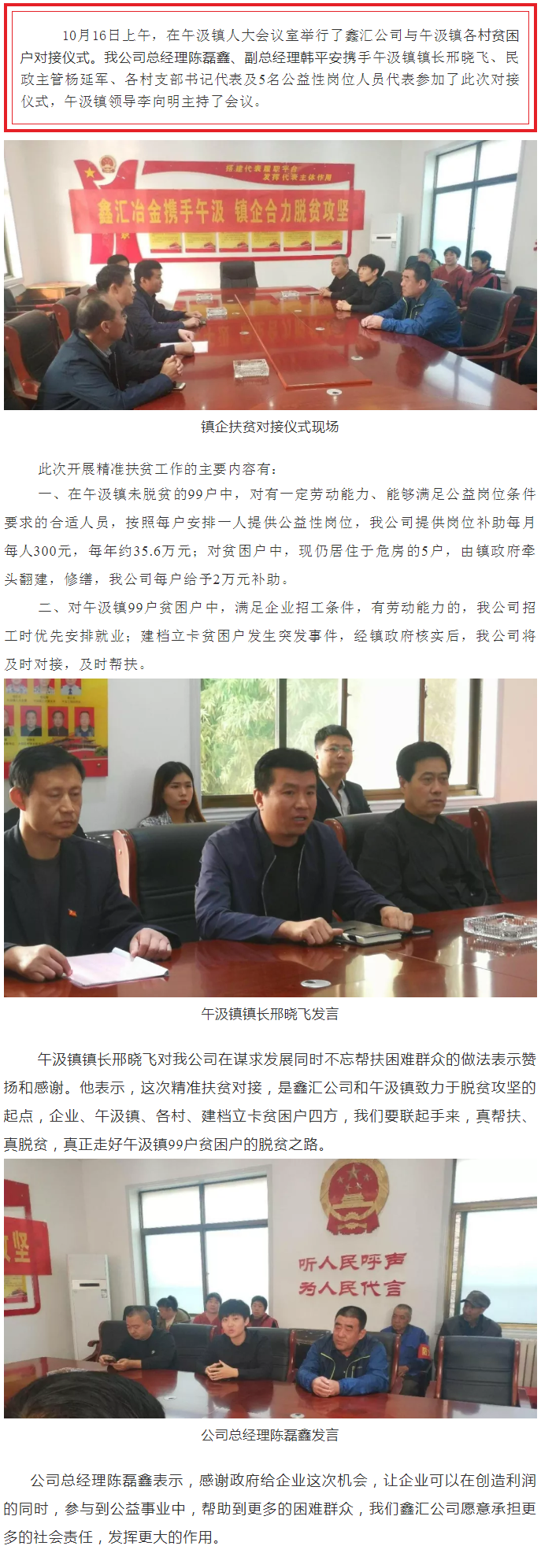 鑫匯冶金攜手午汲,鎮(zhèn)企合力脫貧攻堅