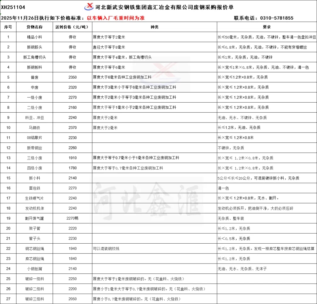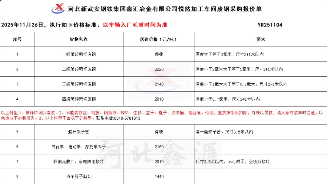 現(xiàn)有鑫匯廢鋼業(yè)務聯(lián)系方式:侯書強 17731809509 趙曉飛 13582307272