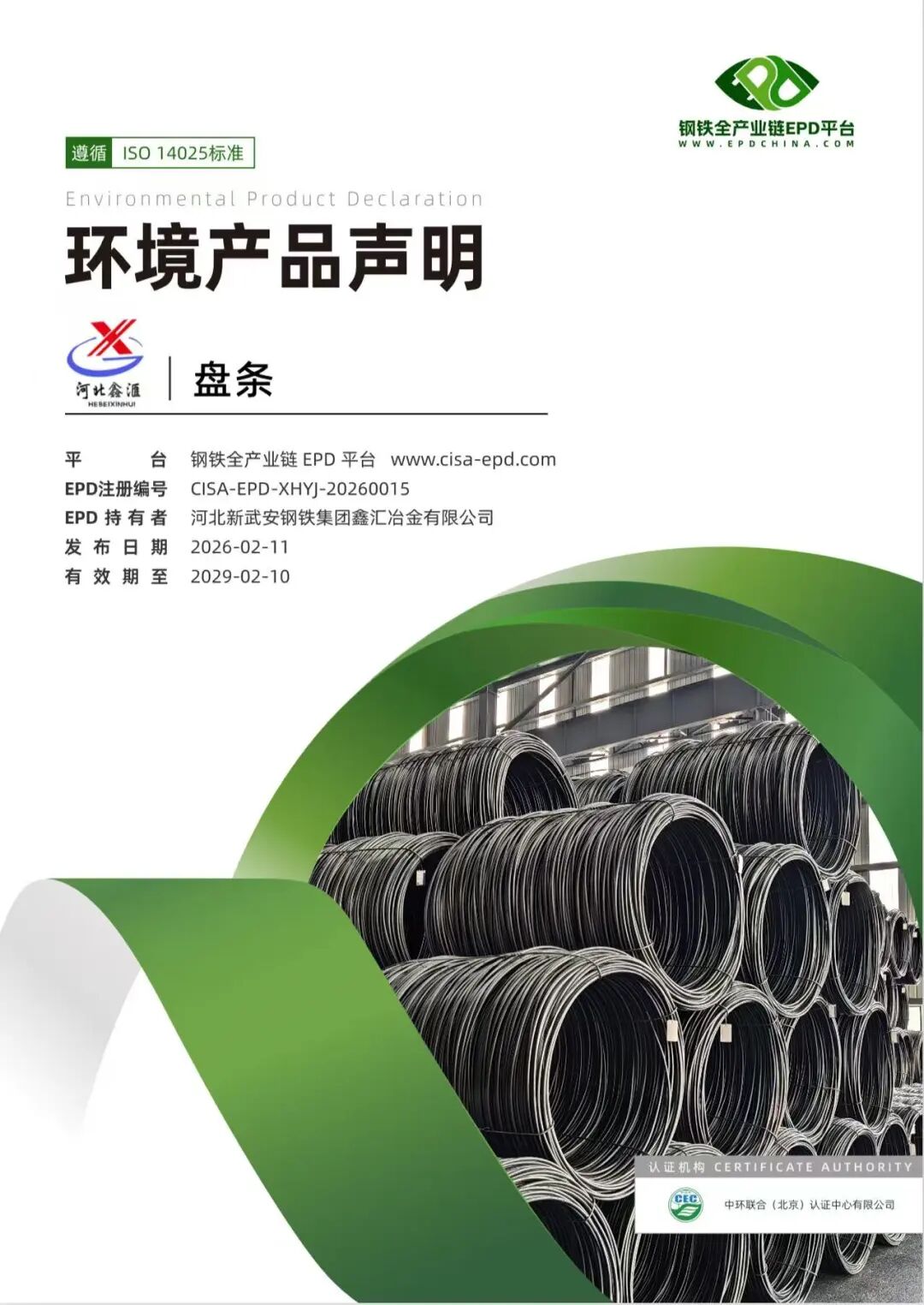 近日我公司生產(chǎn)的低碳熱軋盤(pán)條在鋼鐵全產(chǎn)業(yè)鏈(EPD)平臺(tái)發(fā)布了環(huán)境產(chǎn)品聲明,這一認(rèn)證的成功獲取,是鑫匯綠色轉(zhuǎn)型的關(guān)鍵跨越,標(biāo)志著企業(yè)高質(zhì)量發(fā)展再上新臺(tái)階。