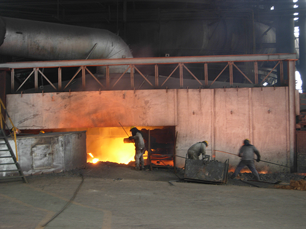 出鐵是最為壯觀的時候,如果順利,每爐鐵水要流60至70分鐘。爐口不暢通的時候,穿著阻燃服的爐前工戴著防護(hù)面罩,站立在1470多度的爐前疏通。出鐵后,也是爐前工最累的時候,他們要做許多的準(zhǔn)備和后續(xù)工作,如報罐、填寫報表、清理鐵水的殘渣、殘鐵、備料、倒渣、驗罐、現(xiàn)場定置等。大壕幾百度的高溫,暗藏著的險情不言而喻,如果稍一走神,便會有燒、燙傷的危險。一天下來,爐前工的衣服濕透了,臉上掛滿了黑灰,身上也變得鐵一樣黑。